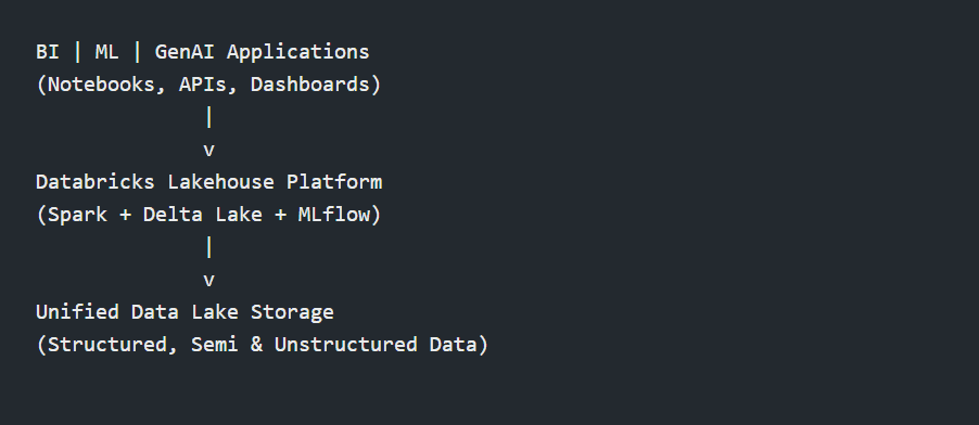 Databricks is built on Apache Spark and embraces an openLake house architecture. It is designed for organizations that want to unify data engineering, analytics, and AI on a single platform.